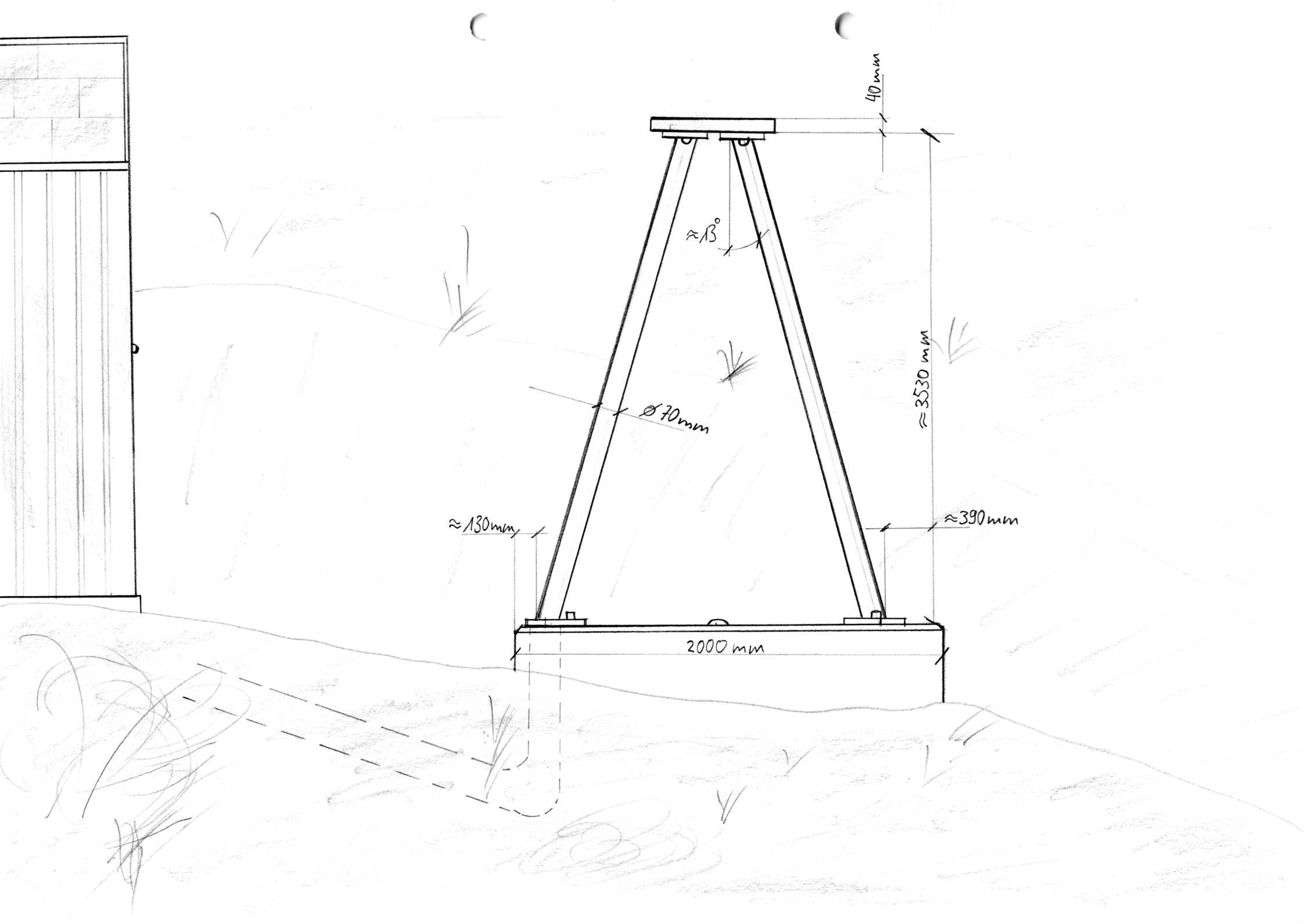 This is BFO1. Close-up view of the Tripod with the old (pre-2017) Trimble antenna. The height of the tripod has been chosen to match the height of the magnetics hut.