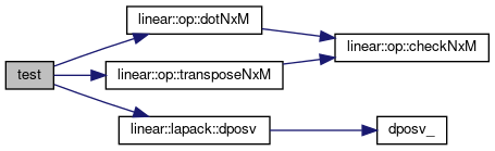 References linear::op::dotNxM(), linear::lapack::dposv(), DUMP, and linear::op::transposeNxM().